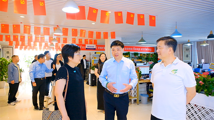 郜國玉一行參觀了集團各個辦公區域,從現代化的辦公環境到充滿活力的團隊氛圍,每一步都彰顯出集團的蓬勃生機與創新精神。在企業文化展廳,他們駐足觀覽,通過一系列精心設計的展示,深入了解了榮盛科技集團自成立以來的發展歷程、核心價值觀及所取得的一系列成就。參觀過程中,郜國玉一行主委傾聽了楚科奇董事長關于集團運營現狀、業務拓展方向以及未來發展戰略的詳細介紹,對集團在多個高科技領域展現出的實力和前瞻性布局深感欽佩。